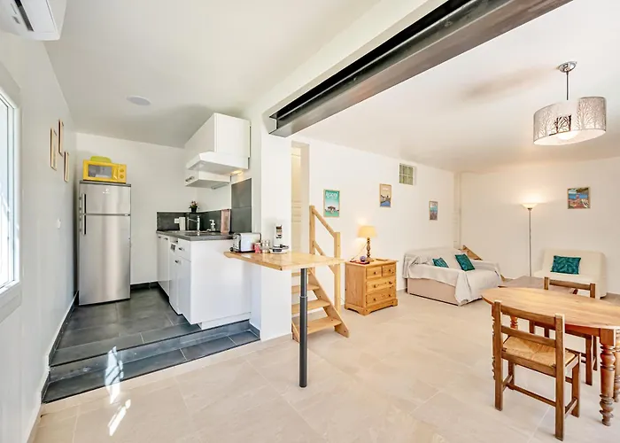 Apartmán Grand T2 Clim & Wifi En Rez De Villa Proche Mer nabízí kompletní kuchyni i pokoje s přístrojem na přípravu kávy a čaje, místností na posezení, ovládáním klimatizace. Letiště Hyeres je od apartmánu vzdáleno 10 km, zatímco Casino des Palmiers - Hyères je vzdáleno 3 km.